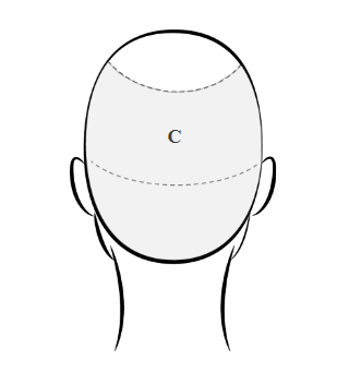 ZONA C: Traccia una curva a partire dalla sommità di un orecchio, estendendola sopra la parte superiore dell’osso occipitale e terminando alla sommità dell’orecchio opposto.