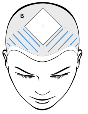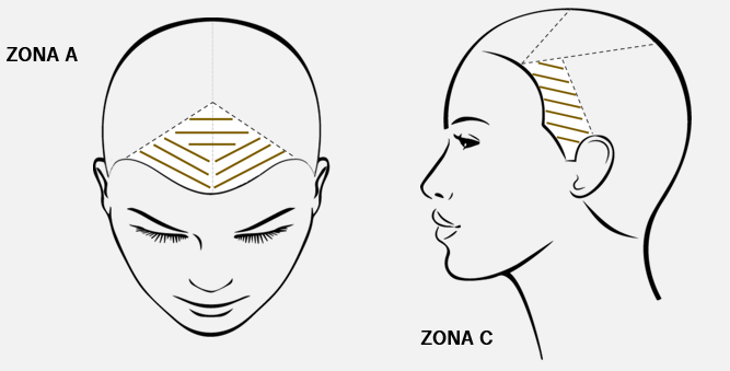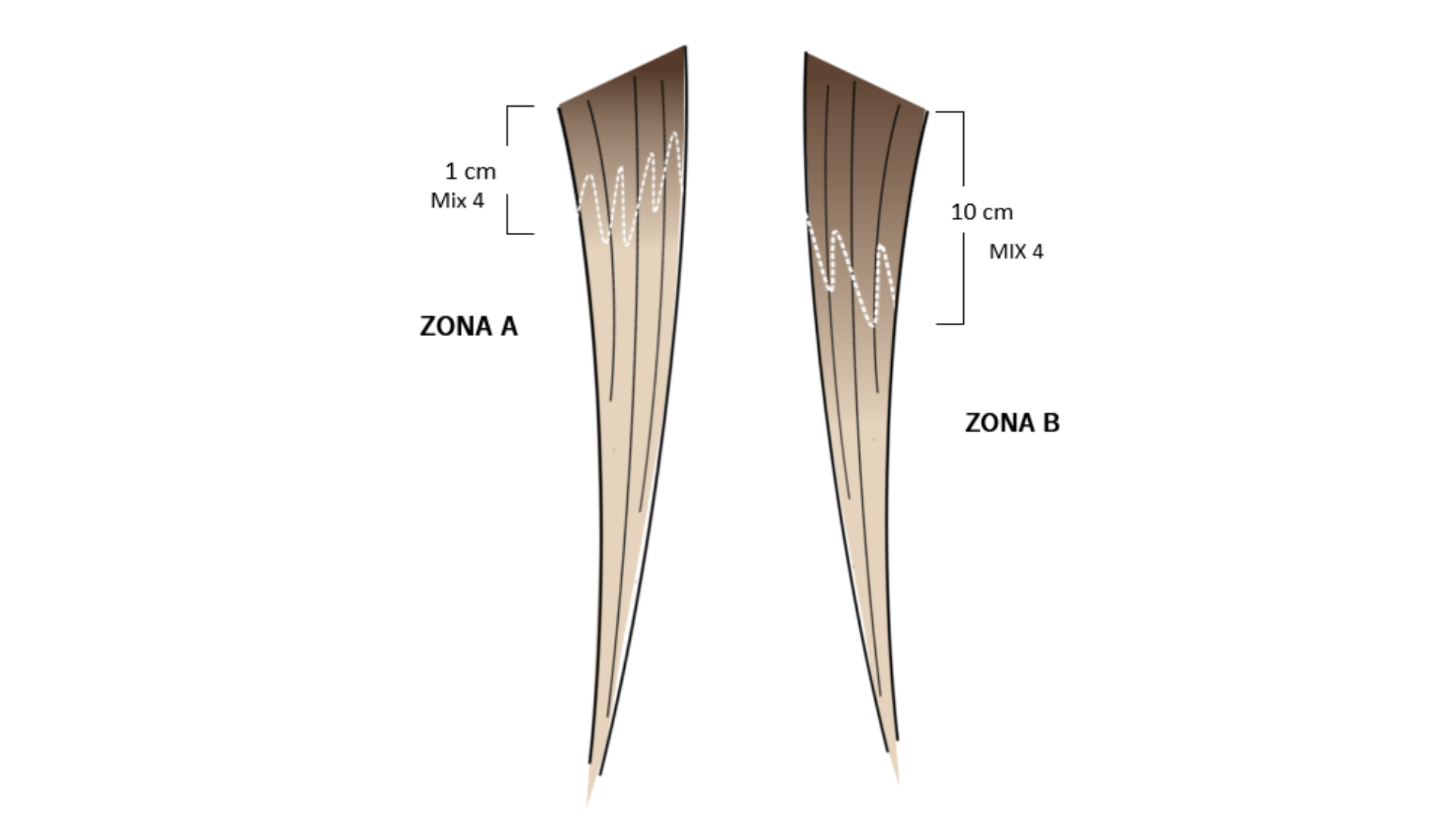 (applicare su 1 cm della ricrescita zona A e su 10 cm zona B)