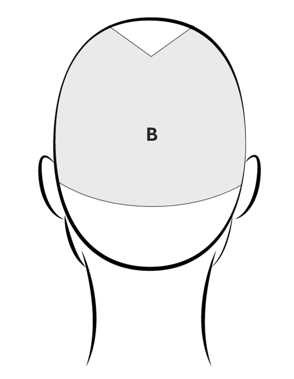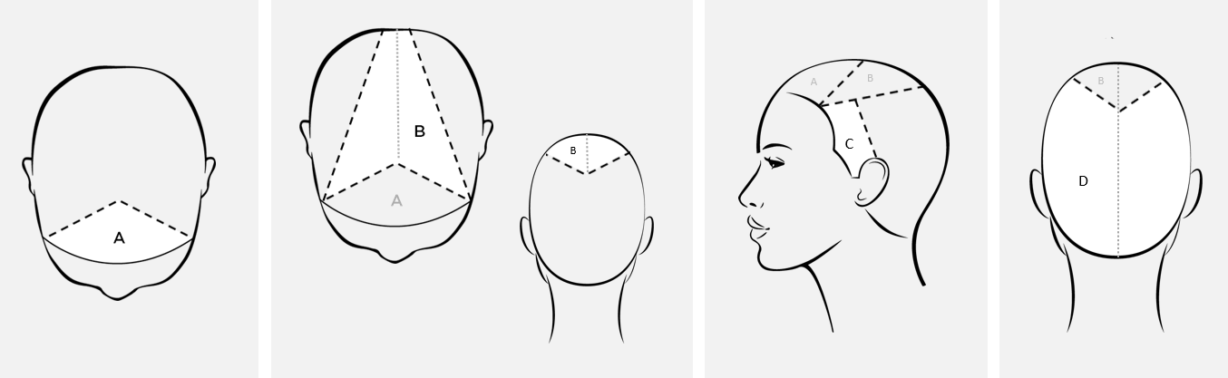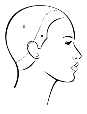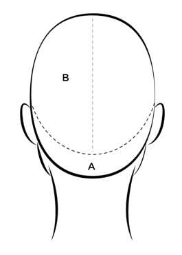 - Creare su entrambi i lati una separazione verticale dalla punta dell’orecchio fino alla linea della zona B