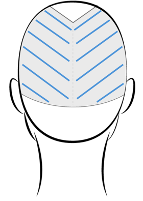 - Tracciare una curva a circa 3 cm dalle attaccature, lungo tutto il perimetro della testa