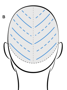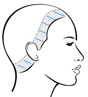 Tracciare una curva dalla parte posteriore dell’orecchio, passando per l’occipite fino al lato opposto.